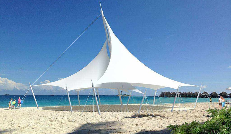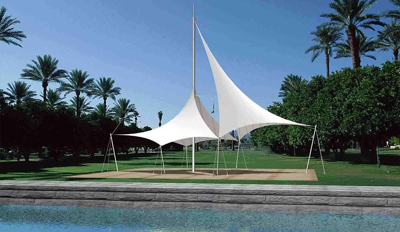 景观棚不仅有着变化多端的不规律形状可设计,并且拥有多种的遮布花型图案、色调,客户可依据需求挑选。